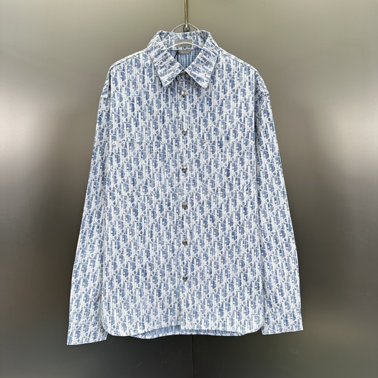極N級 Dior Oblique Shirt ディオール オブリーク シャツ ブルー