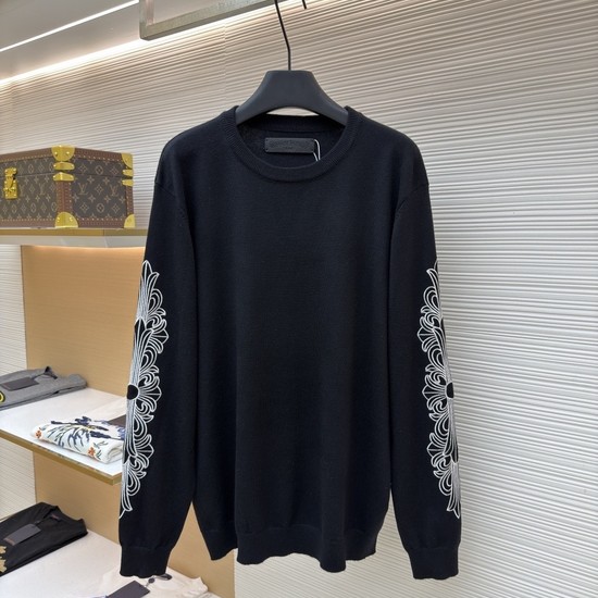 極N級 Chrome Hearts Floral Cross Sleeve Crewneck Knit Sweater クロムハーツ フローラルクロス スリーブ クルーネック ニット ブラック