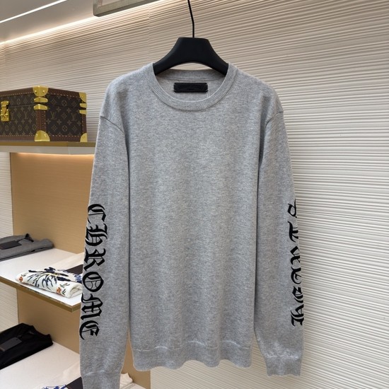 極N級 Chrome Hearts Floral Cross Sleeve Crewneck Knit Sweater クロムハーツ フローラルクロス スリーブ クルーネック ニット グレー