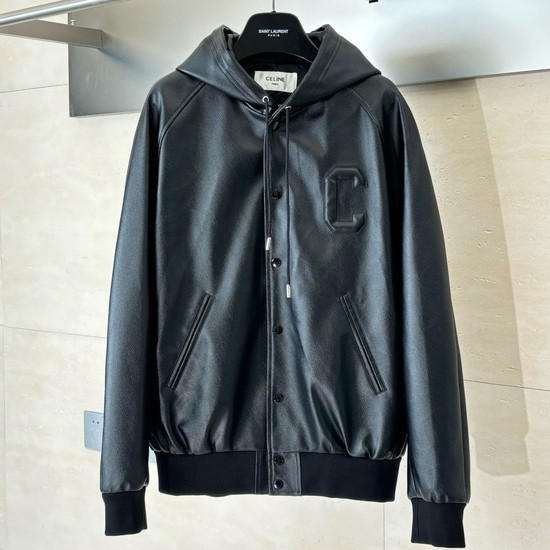 極N級 Celine Sheepskin Hooded Leather Jacket セリーヌ ラムスキン フーデッド レザージャケット